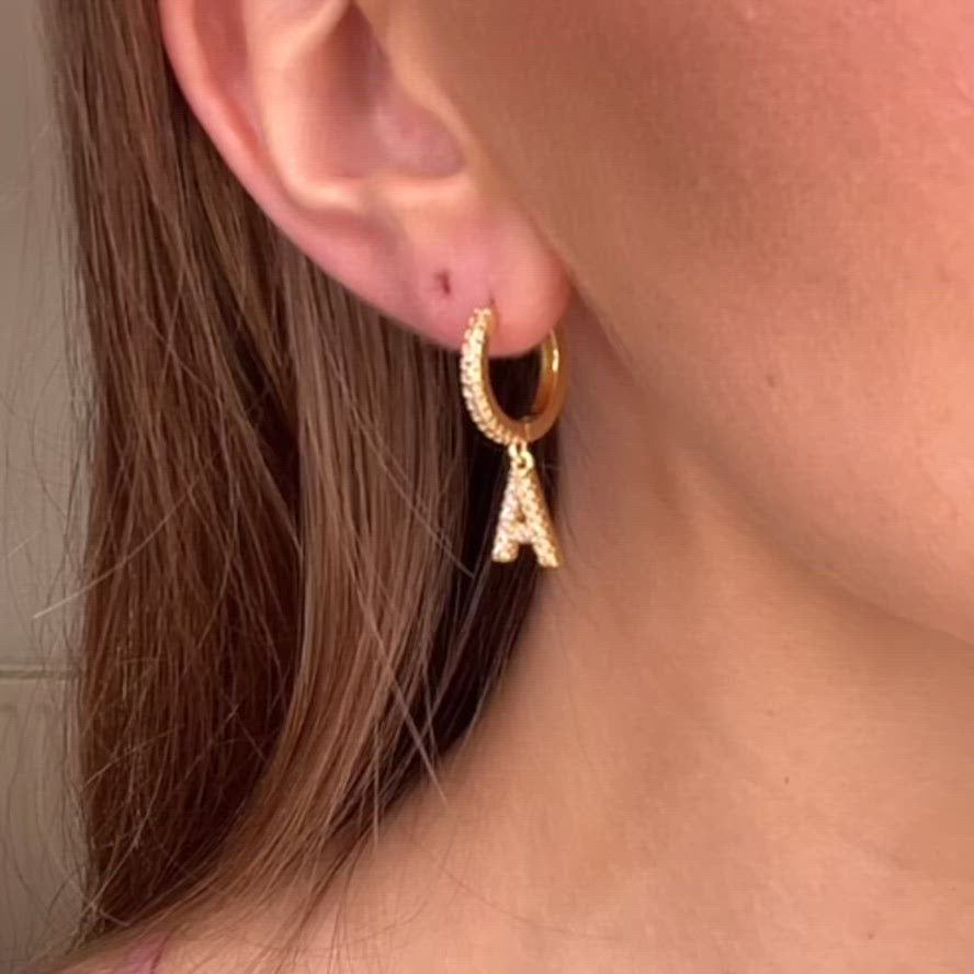 Pretty earring with gold plated letter and small zircon stones.
